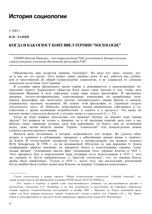 Занятие 2.1. Просвещение, романтизм, консерватизм и социальные науки. Секуляризация истории. От Кондорсе до Сен-Симона и Конта. Социальная физика у О. Конта и А. Кетле. Термин sociologie. Историческая эпистемология О. Конта. Закон трех стадий и трех состояний. Религия человечества. Наследие контовского позитивизма.